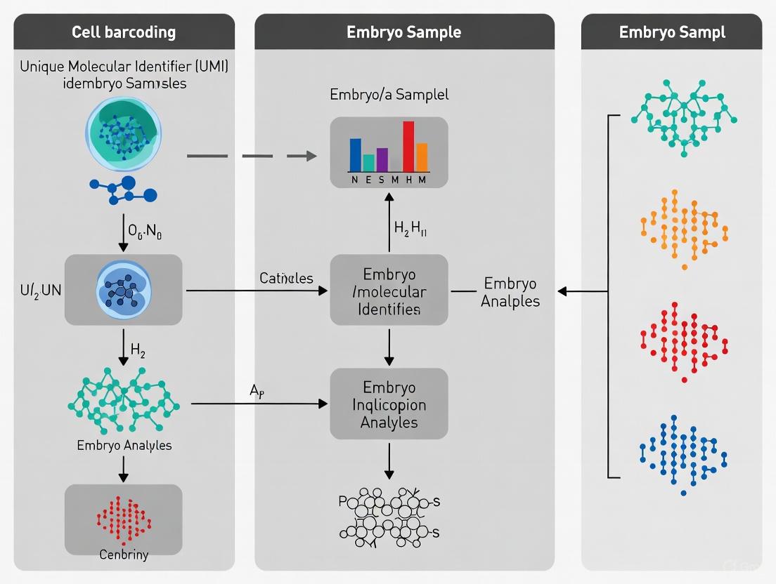Cell barcoding and UMI strategies are indispensable for unlocking the complexities of human embryo development at single-cell resolution. The successful application of these technologies requires a careful balance of robust experimental design, informed by the unique challenges of embryonic material, and sophisticated computational correction for inherent errors. The emergence of comprehensive, integrated reference datasets provides an essential benchmark for validating findings and authenticating embryo models. Future directions will be shaped by multi-omics integration, spatial transcriptomics, and continued computational innovations, collectively driving profound insights into human development, infertility, and congenital diseases. Adherence to these advanced methodological standards is paramount for generating reproducible and biologically meaningful data in this transformative field.