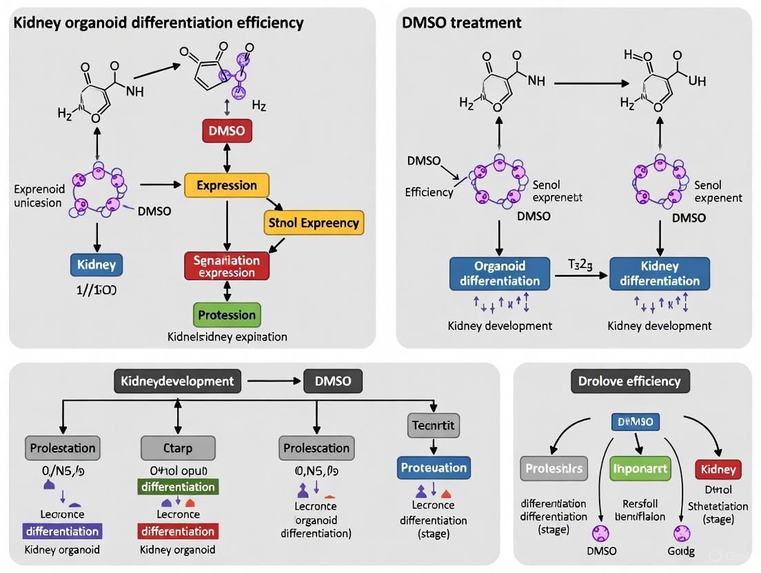 The implementation of DMSO pretreatment represents a significant methodological advance in kidney organoid differentiation, directly addressing critical limitations in efficiency and reliability. By priming hiPSCs through cell cycle regulation and epigenetic modification, researchers can achieve more consistent differentiation into nephron progenitors with reduced off-target cells. While further research is needed to fully elucidate the mechanisms and optimize protocols across different hiPSC lines, the DMSO method offers a practical, cost-effective strategy to enhance kidney organoid quality for research and drug development applications.