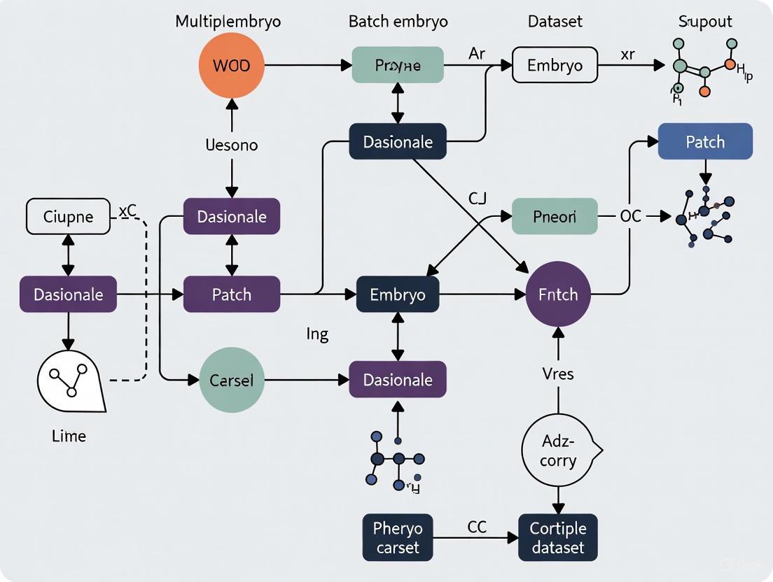 Integrating multiple embryo datasets from diverse studies and platforms is crucial for unlocking large-scale biological insights into early development. However, this integration is severely challenged by batch effects—technical variations that can obscure true biological signals and lead to irreproducible findings. This article provides a comprehensive guide for researchers and scientists, covering the foundational principles of batch effects in embryo studies, a practical overview of state-of-the-art correction methodologies, strategies for troubleshooting and optimization to prevent overcorrection, and a rigorous framework for validating and comparing correction performance using reference benchmarks. By synthesizing the latest computational advances and consortium-driven standards, this guide aims to empower robust and reliable data integration in developmental biology.