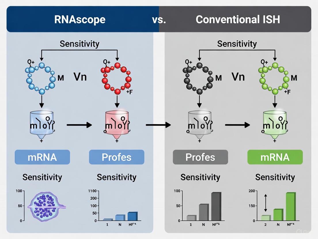 This article provides a detailed comparison of RNAscope in situ hybridization (ISH) and conventional ISH methods, focusing on analytical sensitivity, specificity, and practical applications for researchers and drug development professionals.